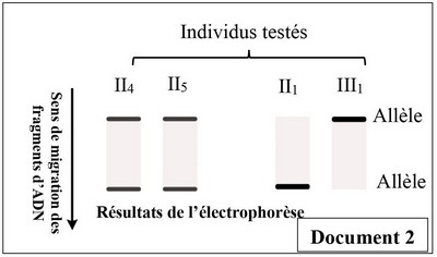 - En exploitant le document 2, donnez, en justifiant votre réponse, les génotypes de chacun des individus testés et déduisez l’état de santé de l’enfant attendu . (1 pt)