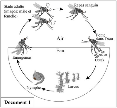 Le document 1 représente les étapes du cycle de vie des moustiques .