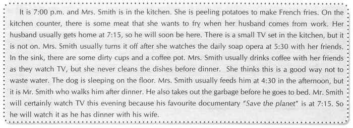 - Read the passage below to answer this question : What does Mrs. Smith do to save electricity and water?
