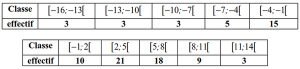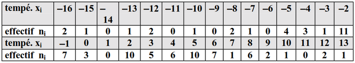 On a relevé les températures des mois de décembre, janvier et février à Nancy sous abri à 3 heures et obtenu le tableau suivant :