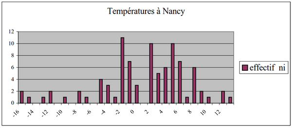 - Variable statistique : température en degré Celsius relevée à 3 heures.