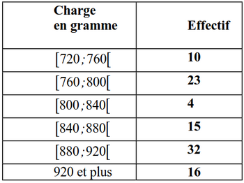 Considérons la série statistique suivante qui décrit la charge de rupture d’un fil :