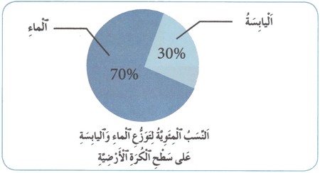 يغطي الماء سطح كوكب الأرض بنسبة %70 تقريبا. بينما تشكل اليابسة %30 تقريبا.