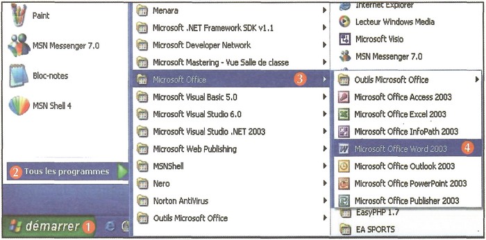 Pour exécuter Word 2003, on utilise le menu