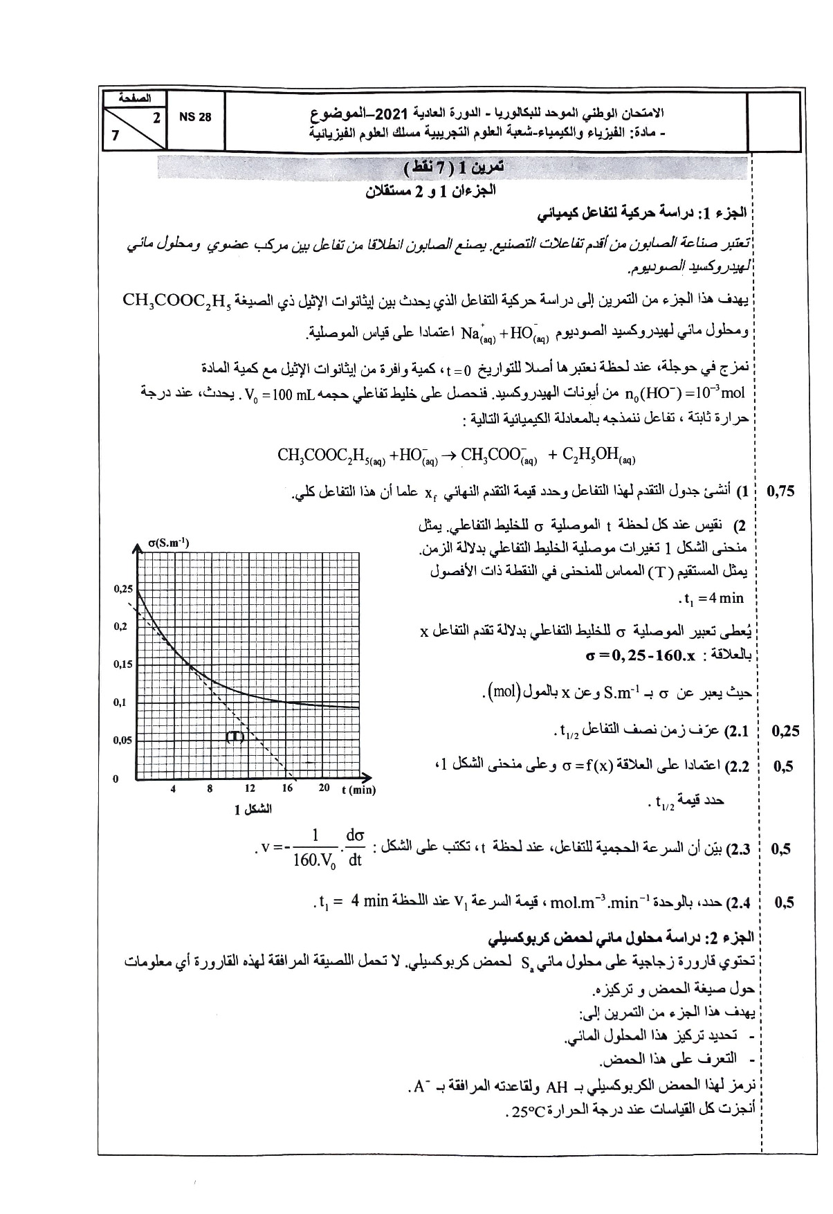 الفيزياء والكيمياء علوم فيزيائية 2021 الدورة العادية - الموضوع