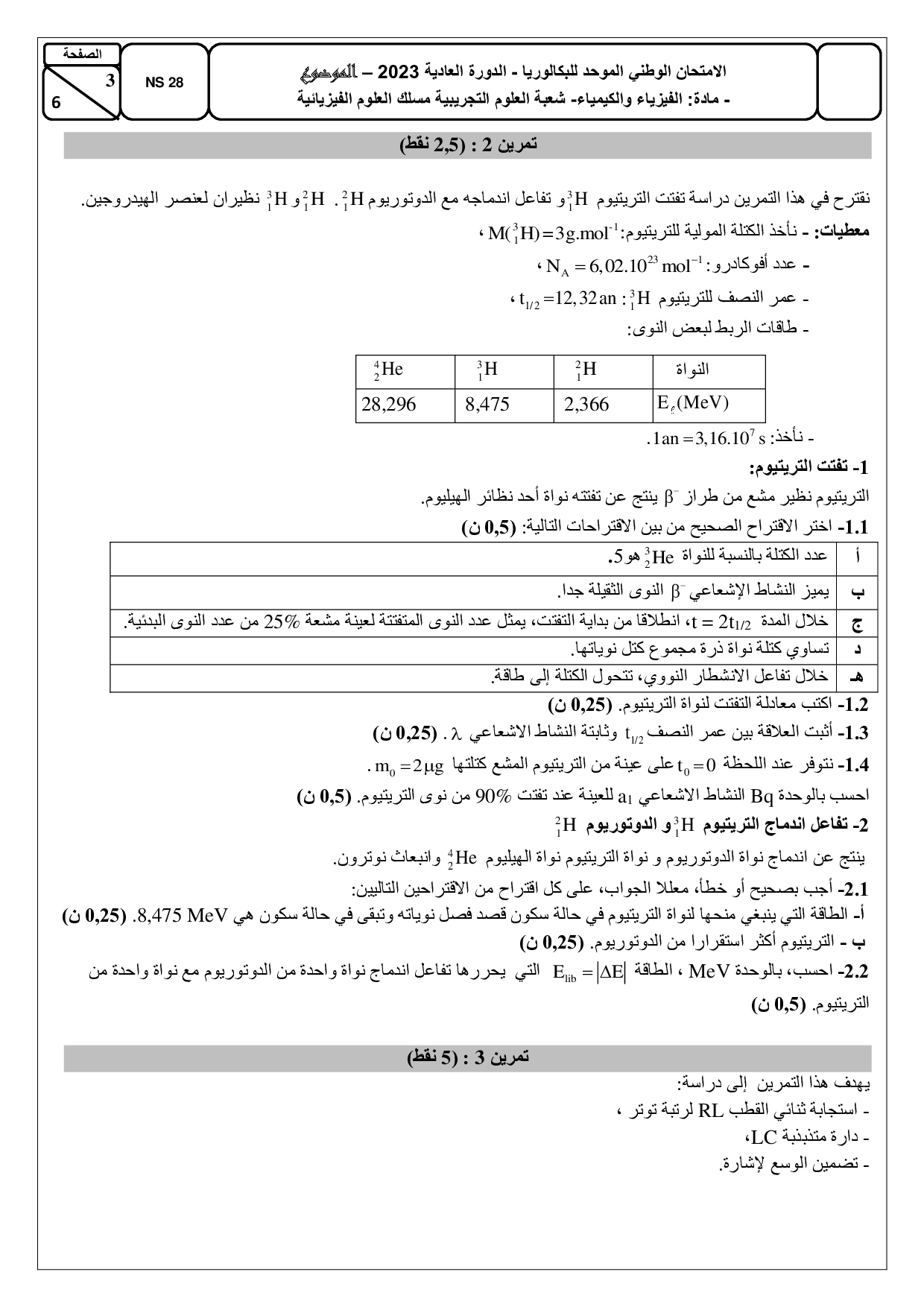 الفيزياء والكيمياء علوم فيزيائية 2023 الدورة العادية - الموضوع