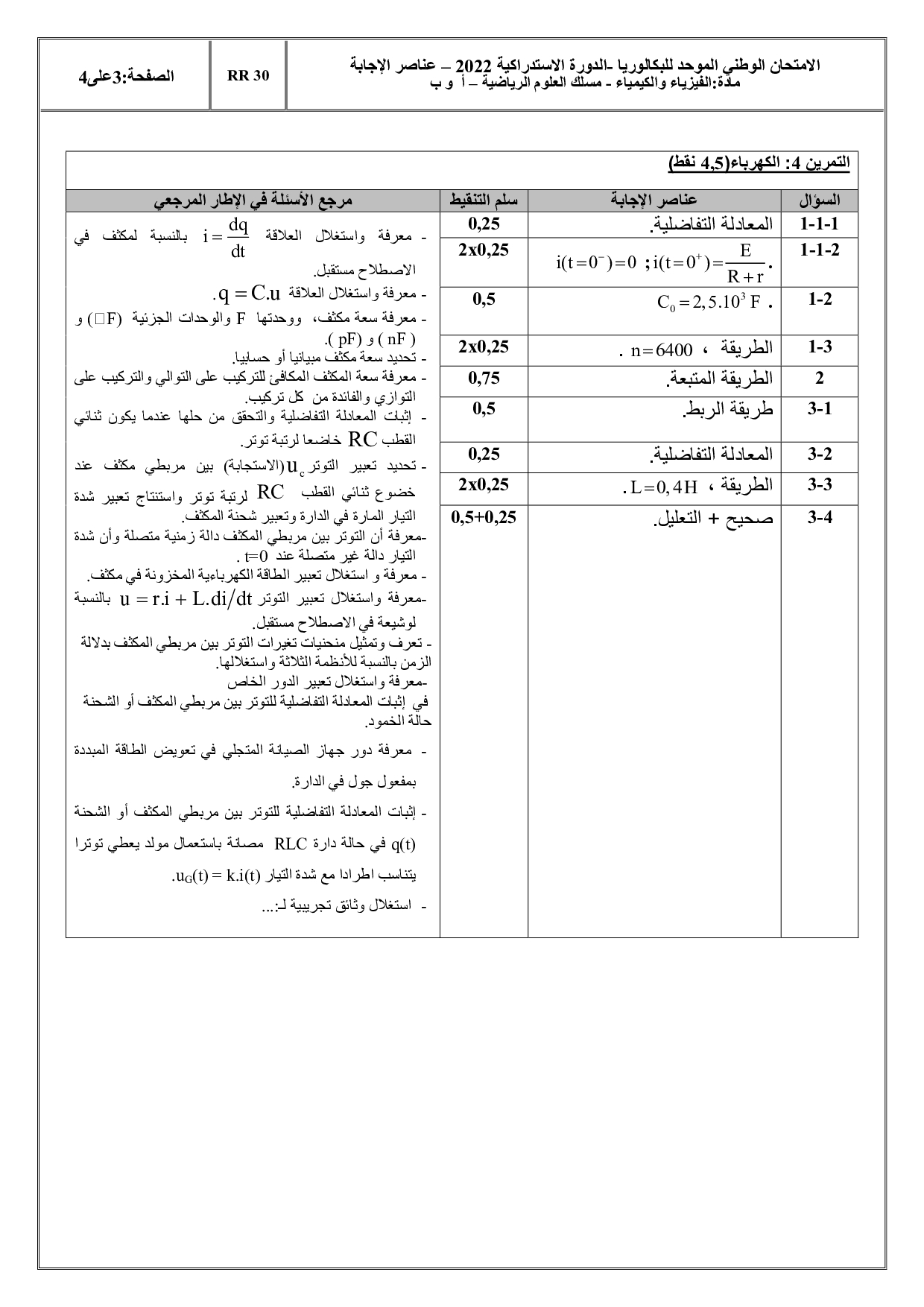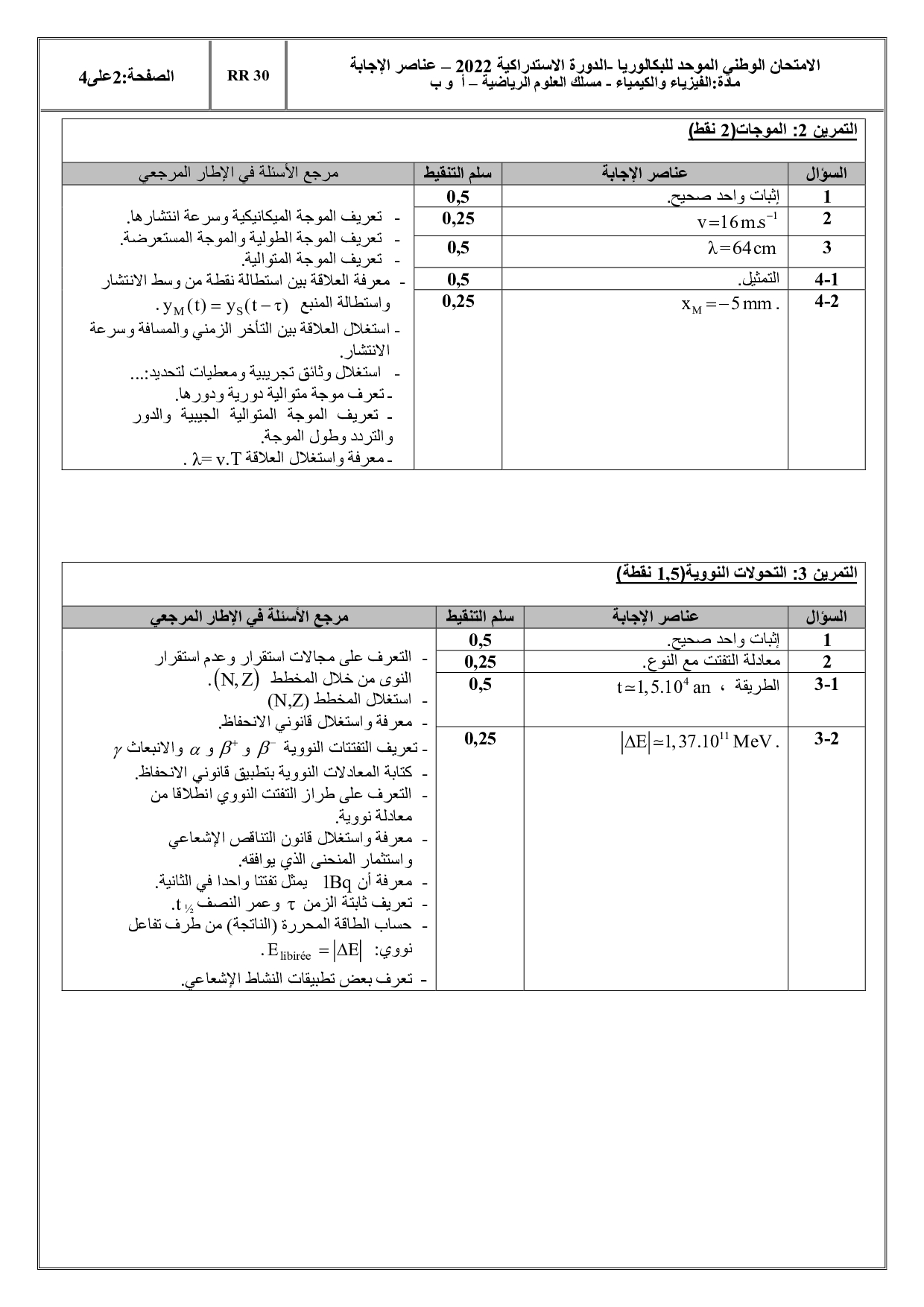 الفيزياء والكيمياء علوم رياضية 2022 الدورة الإستدراكية - التصحيح