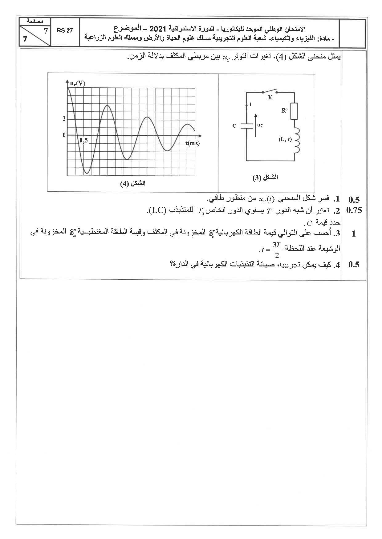 الفيزياء والكيمياء (علوم الحياة والأرض والعلوم والتكنولوجيات) 2021 الدورة الإستدراكية - الموضوع