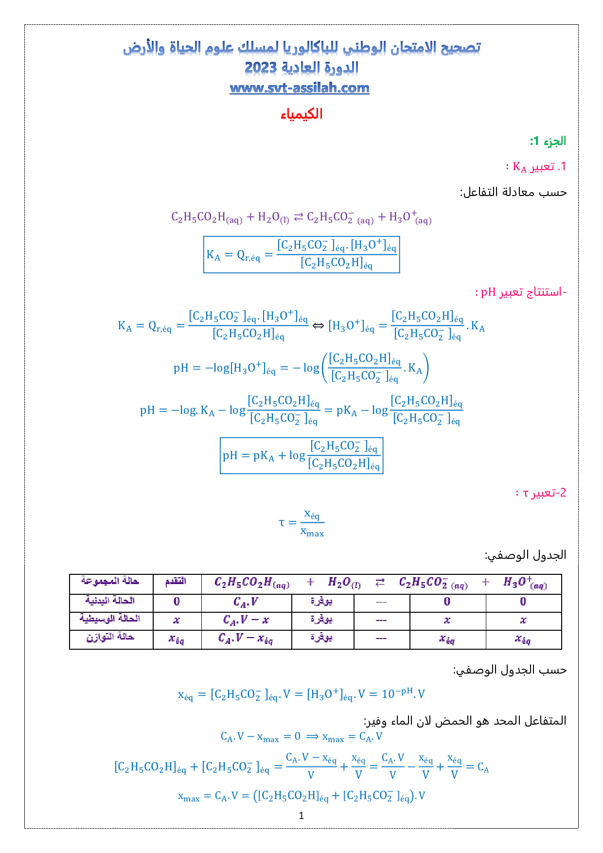 الفيزياء والكيمياء (علوم الحياة والأرض والعلوم والتكنولوجيات) 2023 الدورة العادية - التصحيح