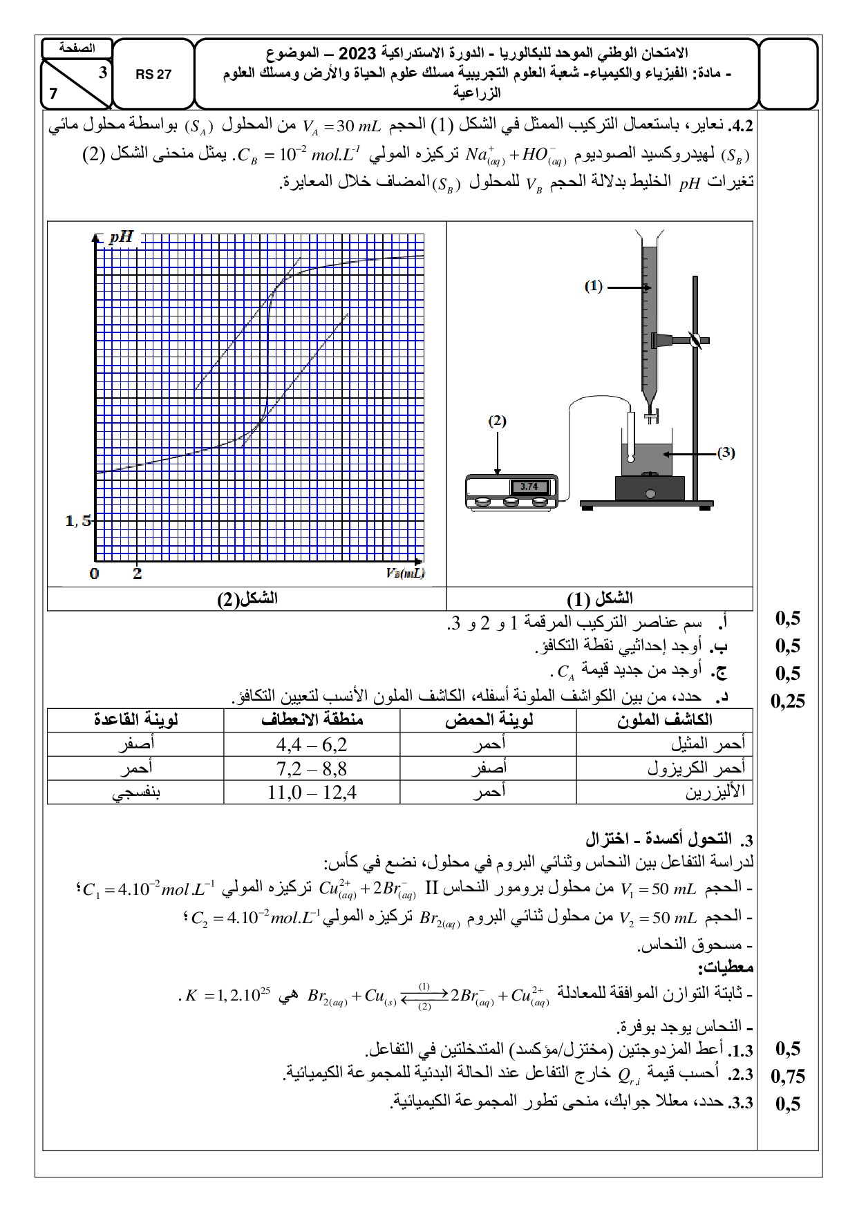 الفيزياء والكيمياء (علوم الحياة والأرض والعلوم والتكنولوجيات) 2023 الدورة الإستدراكية - الموضوع