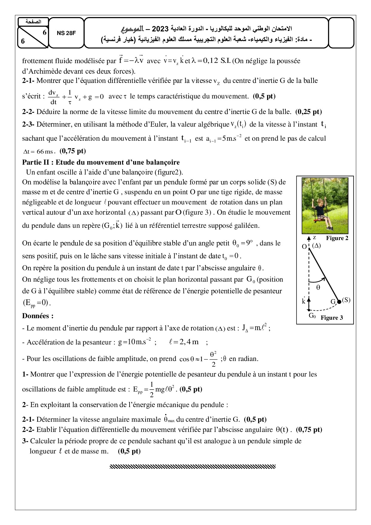 Examen National Physique-Chimie SPC 2023 Normale - Sujet