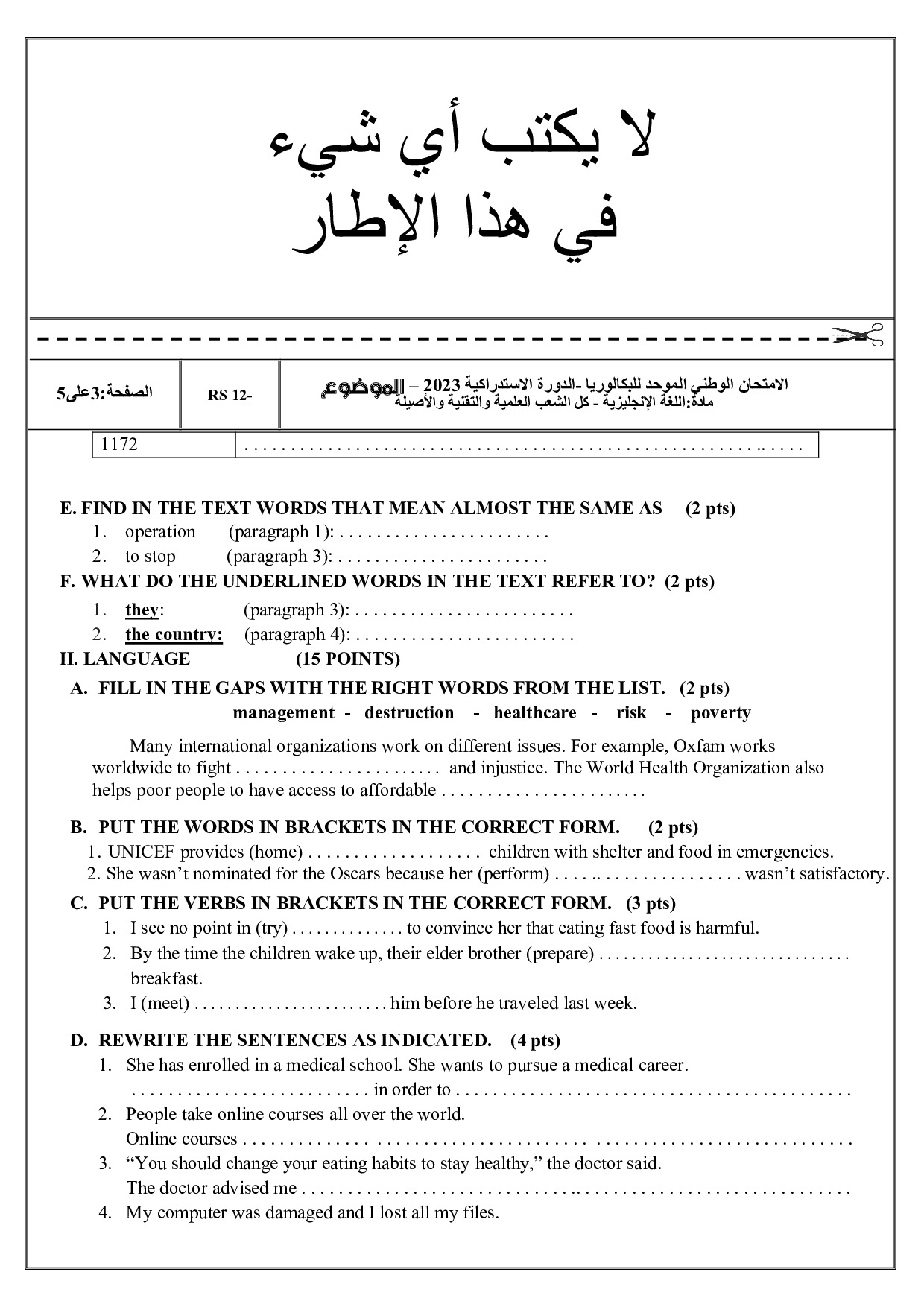 Examen Anglais 2023 Session Rattrapage - Sujet