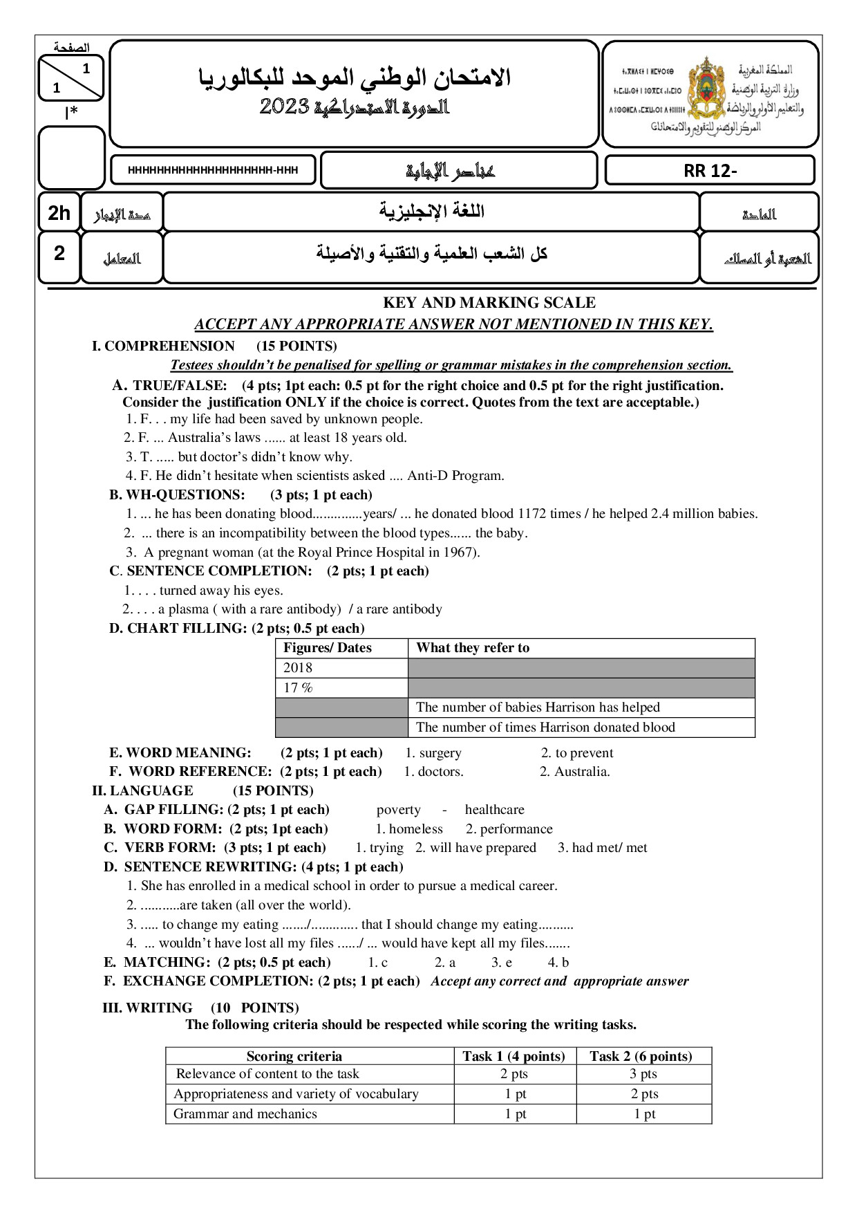 National exams with answers (Sciences)