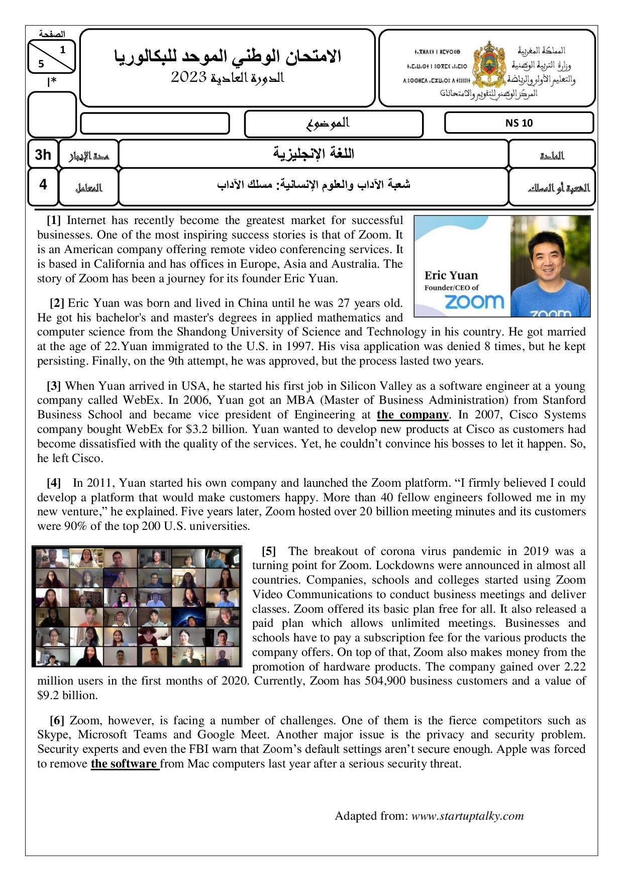 Examen Anglais Lettres 2023 Session Normale - Sujet