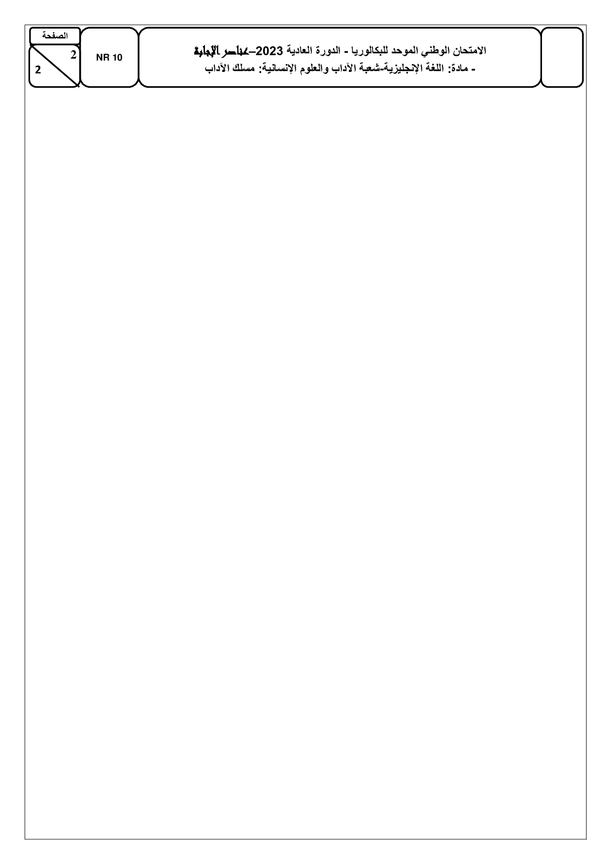 Examen Anglais Lettres 2023 Session Normale - Corrigé