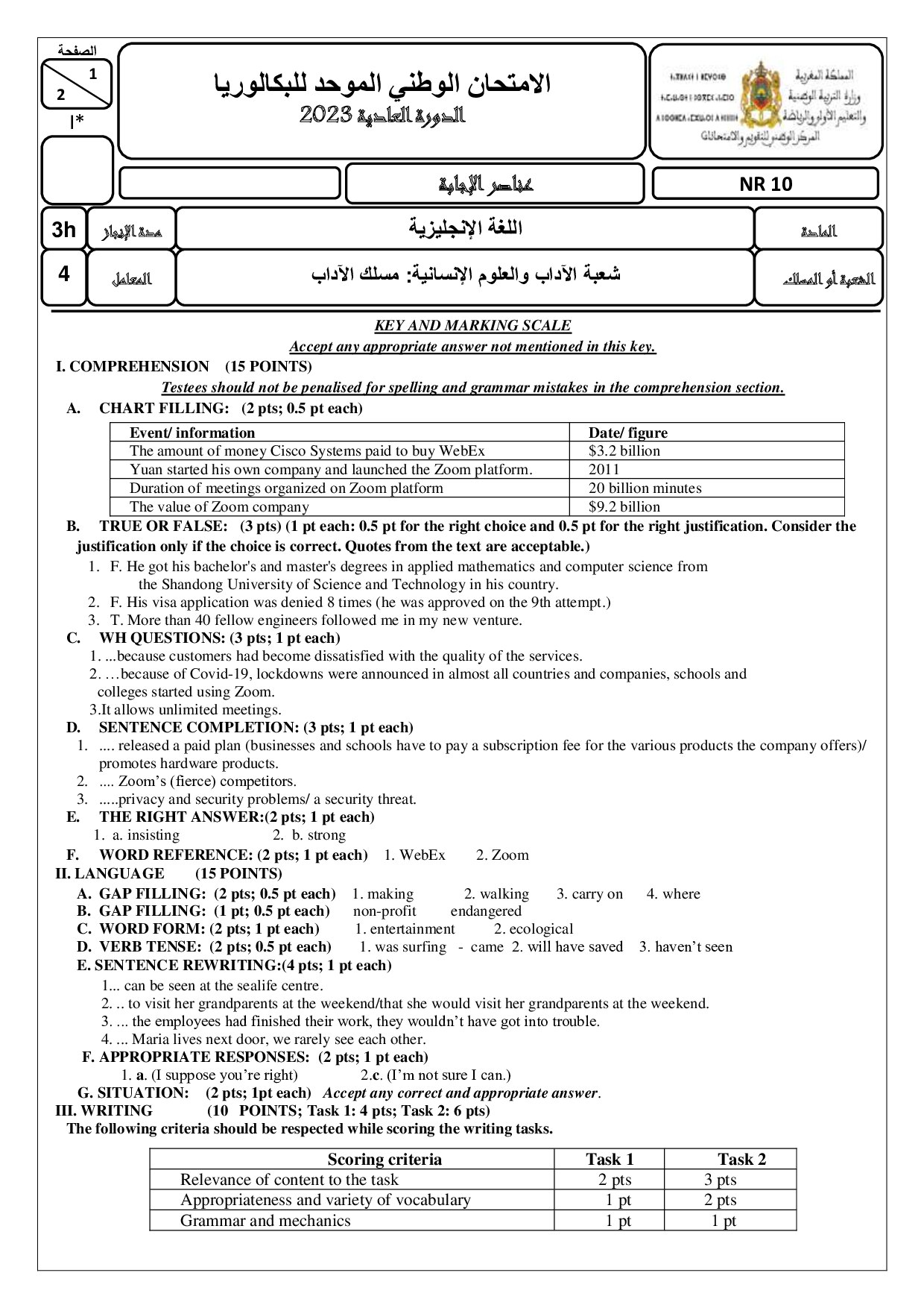 Examen Anglais Lettres 2023 Session Normale - Corrigé