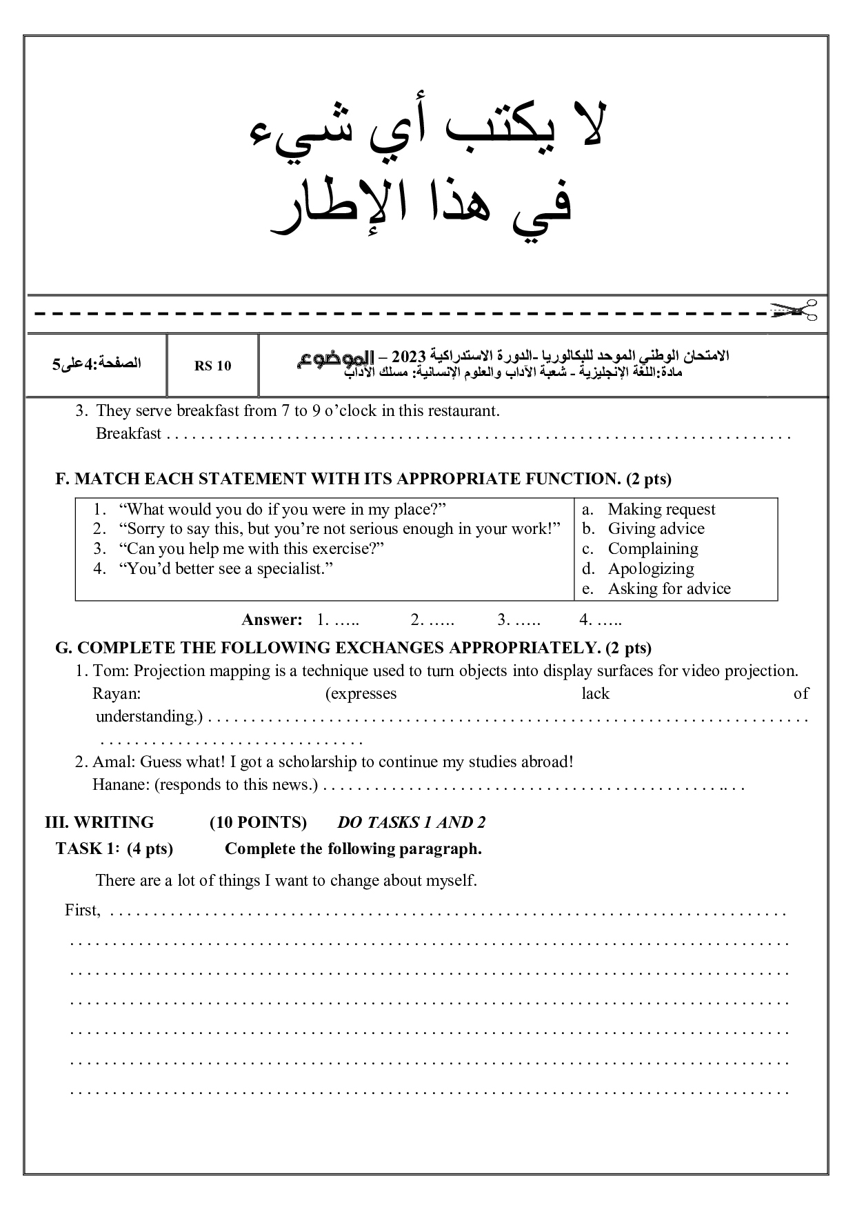 Examen Anglais Lettres 2023 Session Rattrapage - Sujet