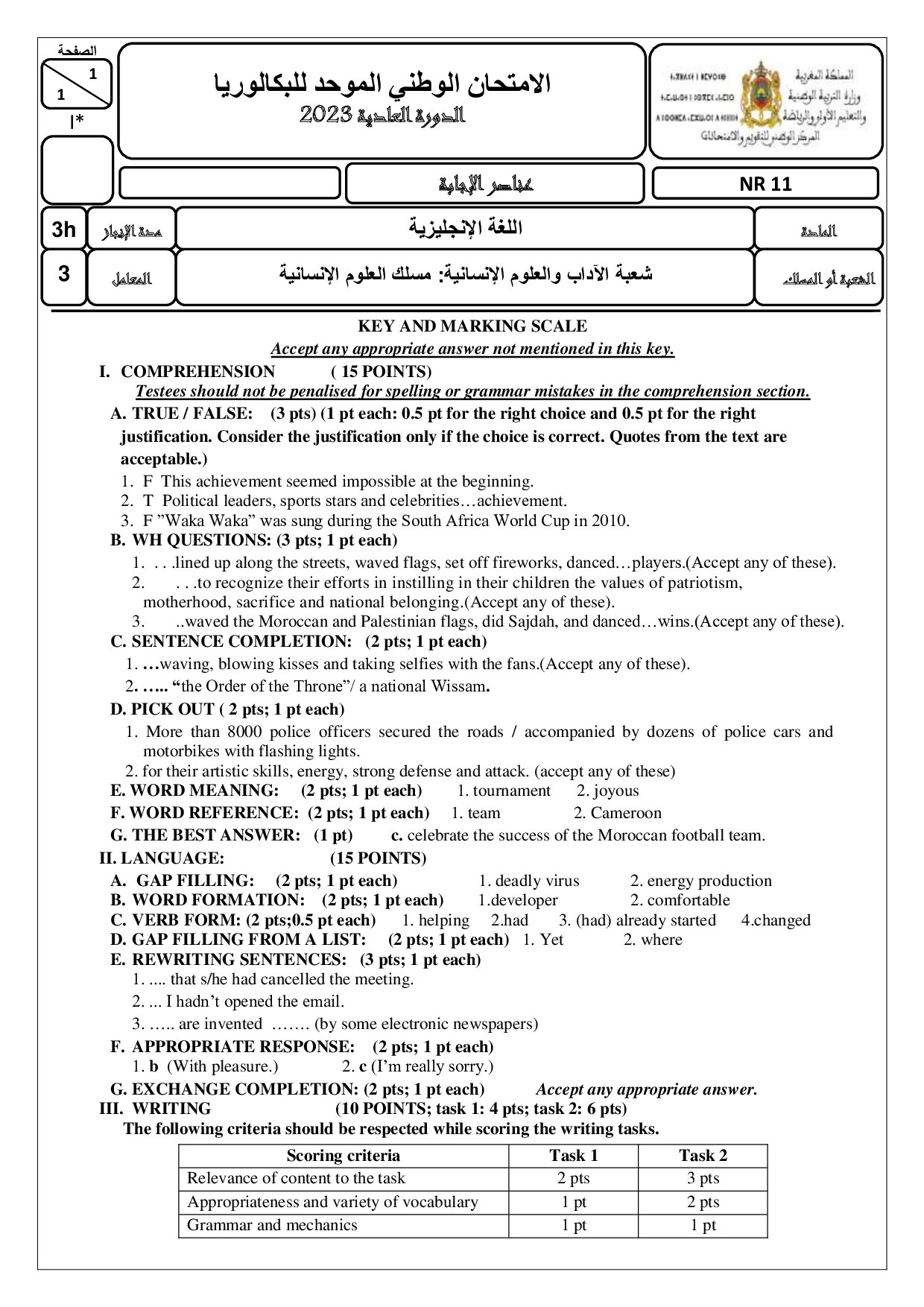 Examen Anglais Science Humaines 2023 Session Normale - Corrigé