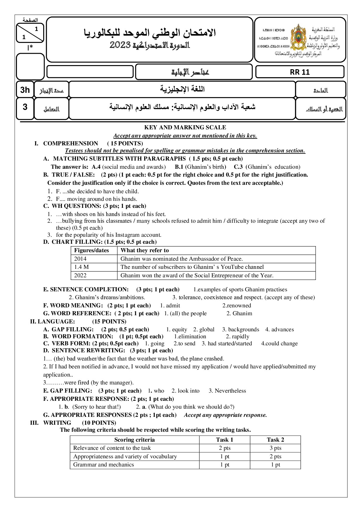 Examen Anglais Science Humaines 2023 Session Rattrapage - Corrigé