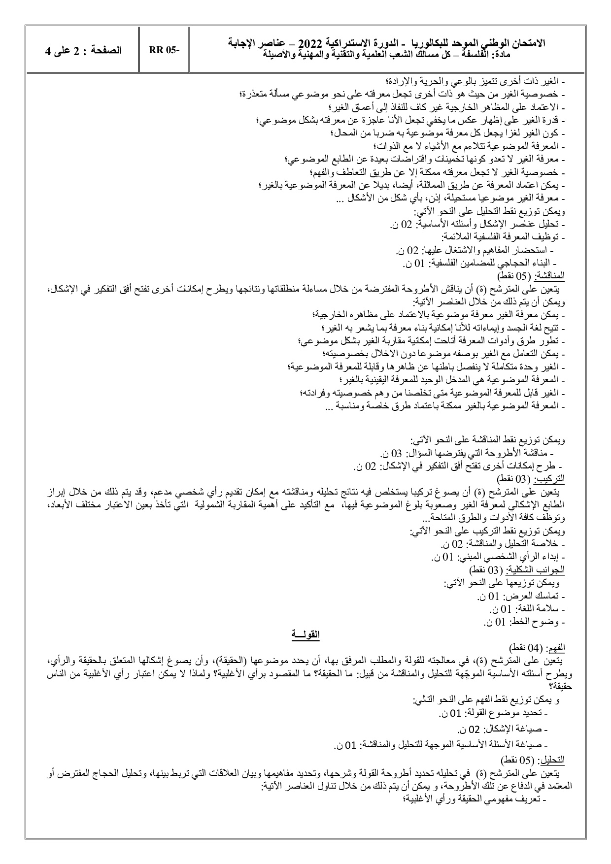 الفلسفة للشعب العلمية والتقنية 2022 الدورة الإستدراكية - التصحيح