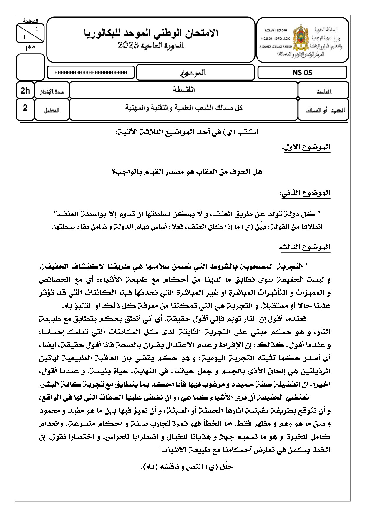 الفلسفة للشعب العلمية والتقنية 2023 الدورة العادية - الموضوع