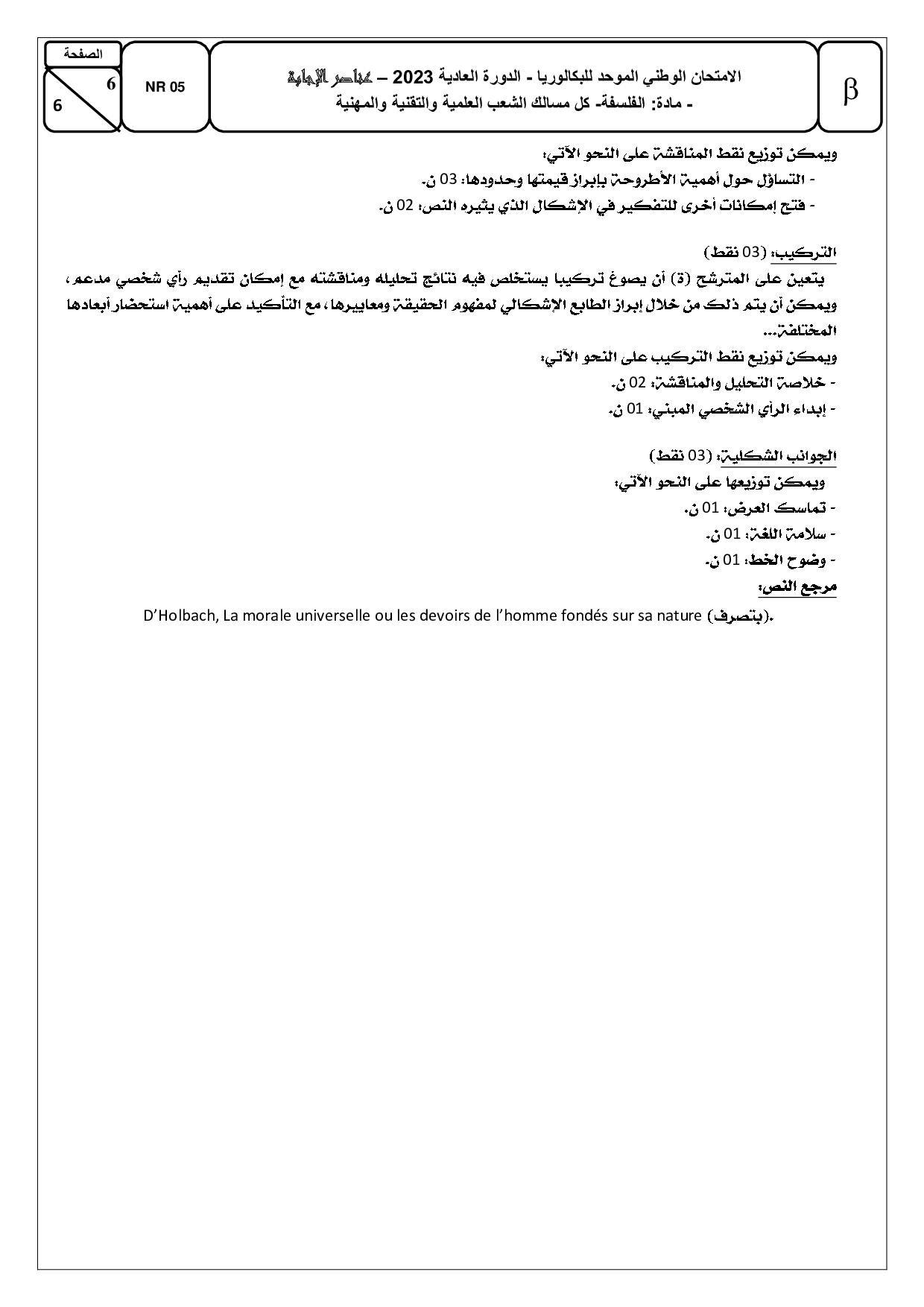 الفلسفة للشعب العلمية والتقنية 2023 الدورة العادية - التصحيح