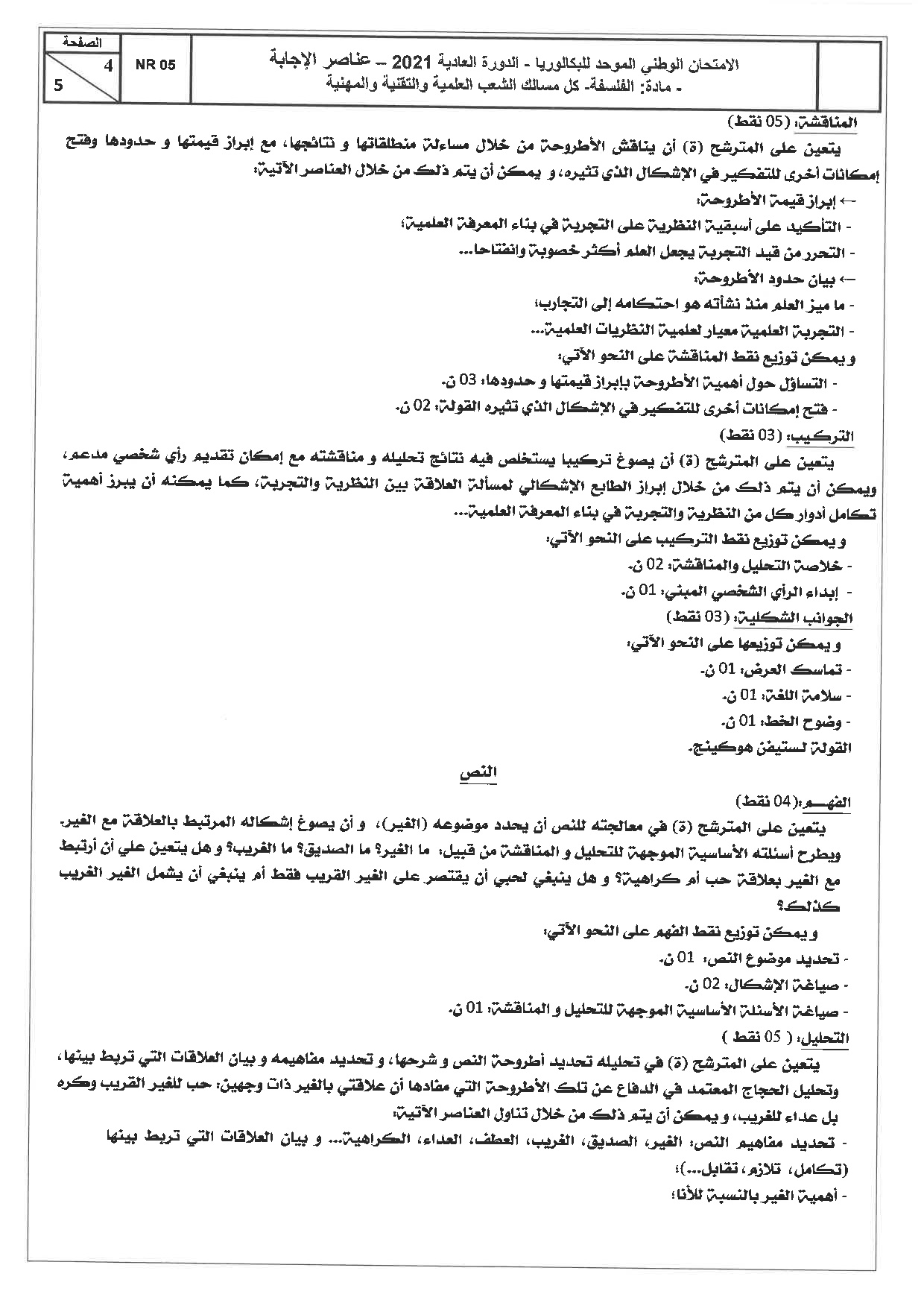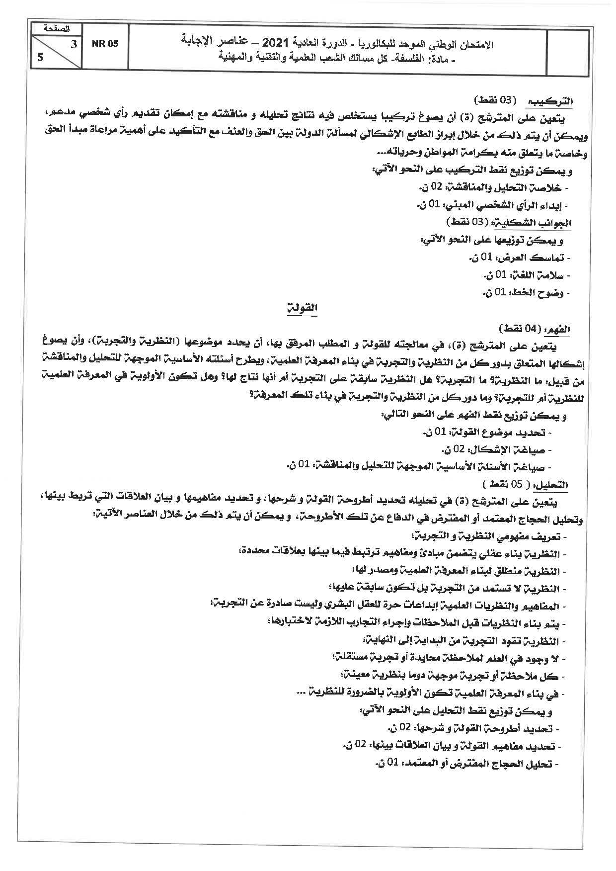 الفلسفة للشعب العلمية والتقنية 2021 الدورة العادية - التصحيح