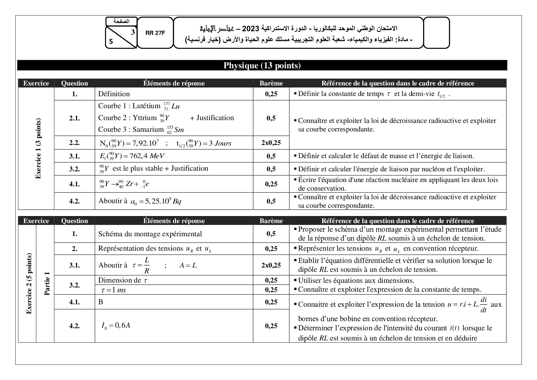 Examen National Physique-Chimie 2 Bac SVT 2023 Rattrapage - Corrigé