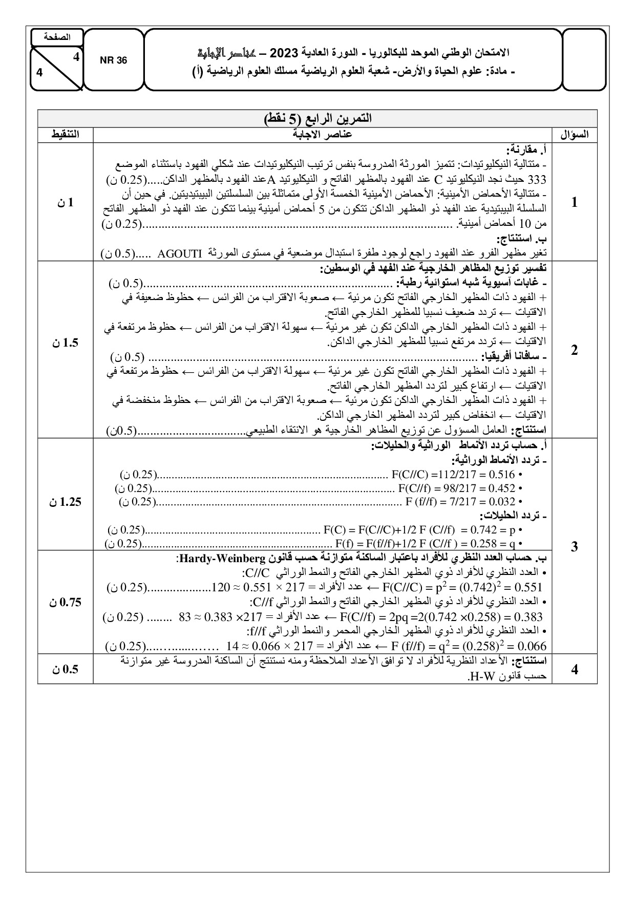 علوم الحياة والارض علوم رياضية أ 2023 الدورة العادية - التصحيح