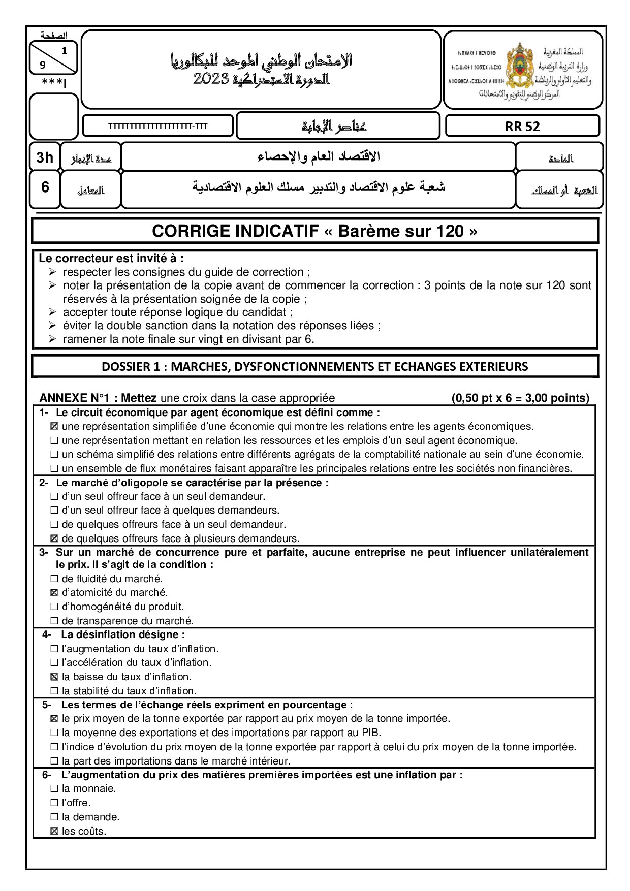 Examen Statistiques 2Bac Eco 2023 Session Rattrapage - Corrigé