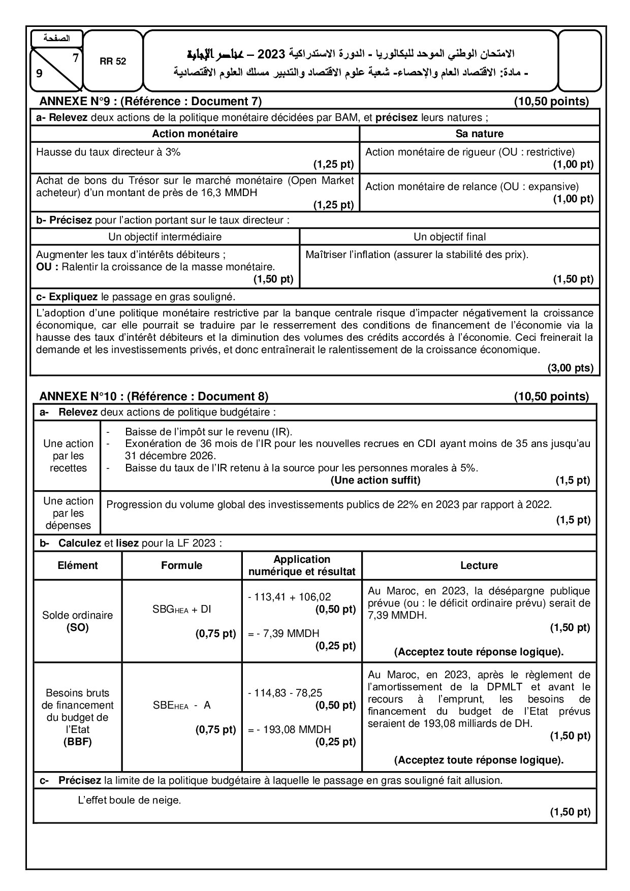 Examens nationaux avec corrigés