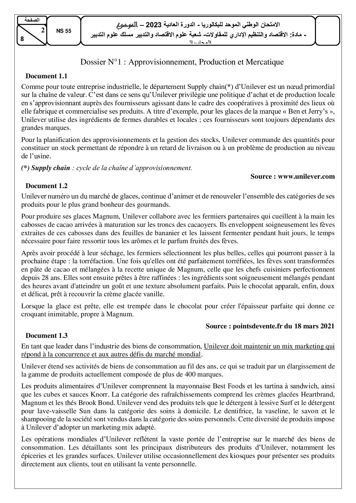 Examen EOAE 2Bac SGC 2023 Session Normale - Sujet