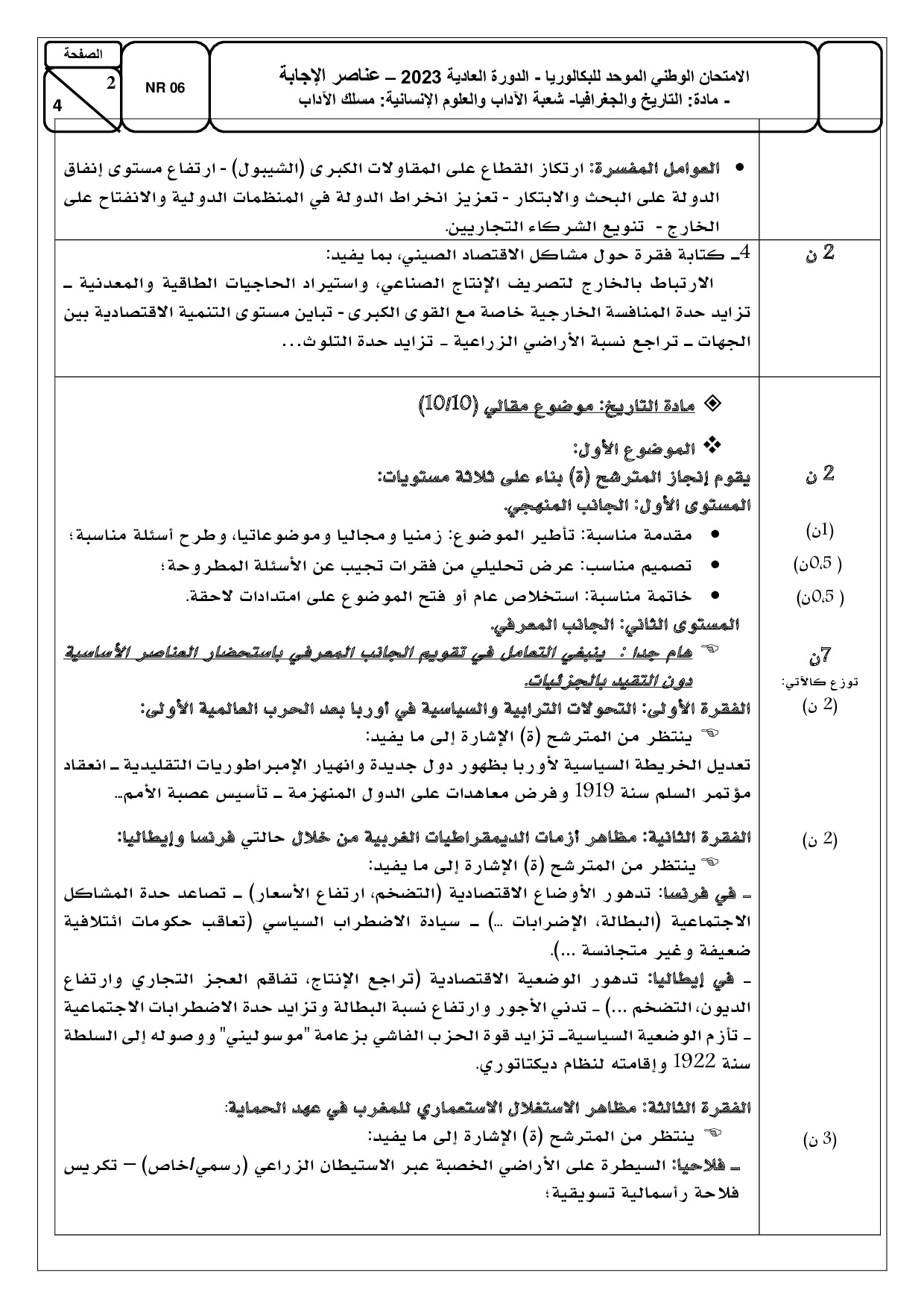 الإجتماعيات (شعبة الآداب) 2023 الدورة العادية - التصحيح