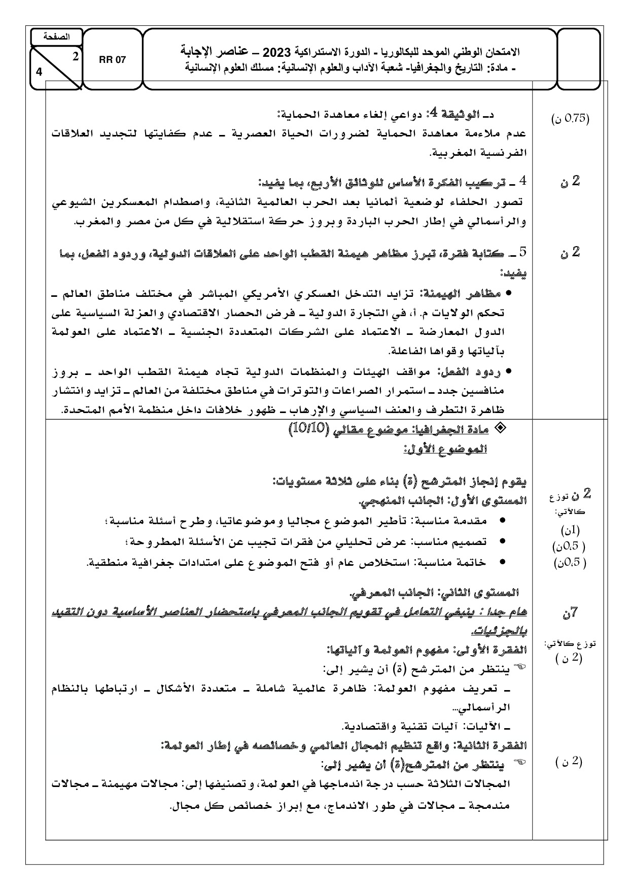 الإجتماعيات (شعبة العلوم الإنسانية) 2023 الدورة الإستدراكية - التصحيح