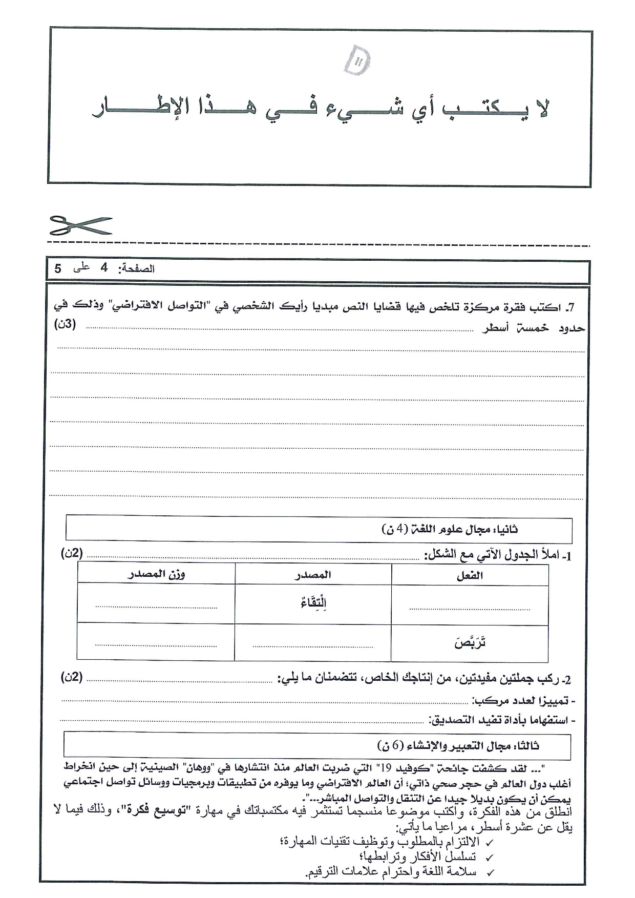 الامتحان الجهوي في اللغة العربية (د. العادية) - فاس مكناس 2021 - الموضوع