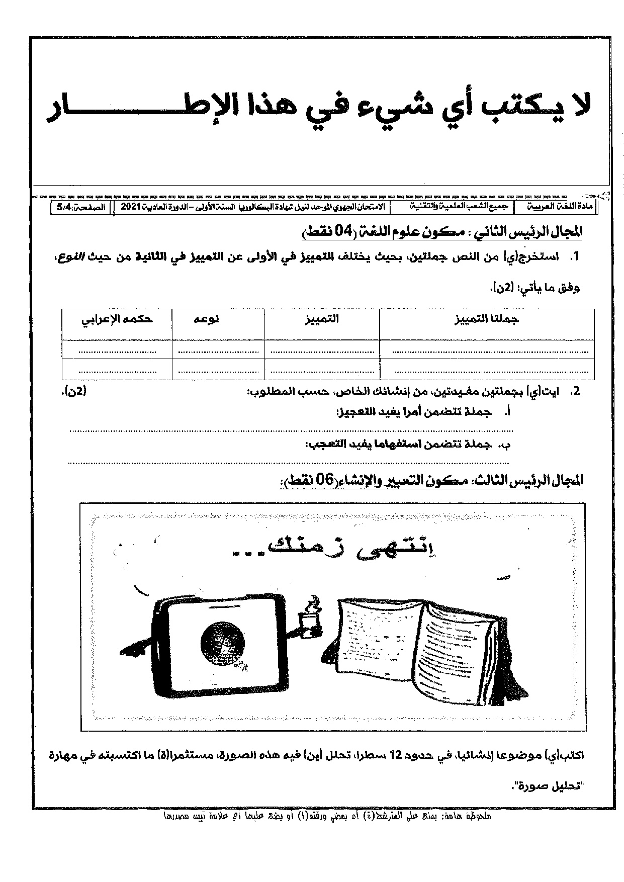الامتحان الجهوي في اللغة العربية (د. العادية) - الدار البيضاء سطات 2021 - الموضوع
