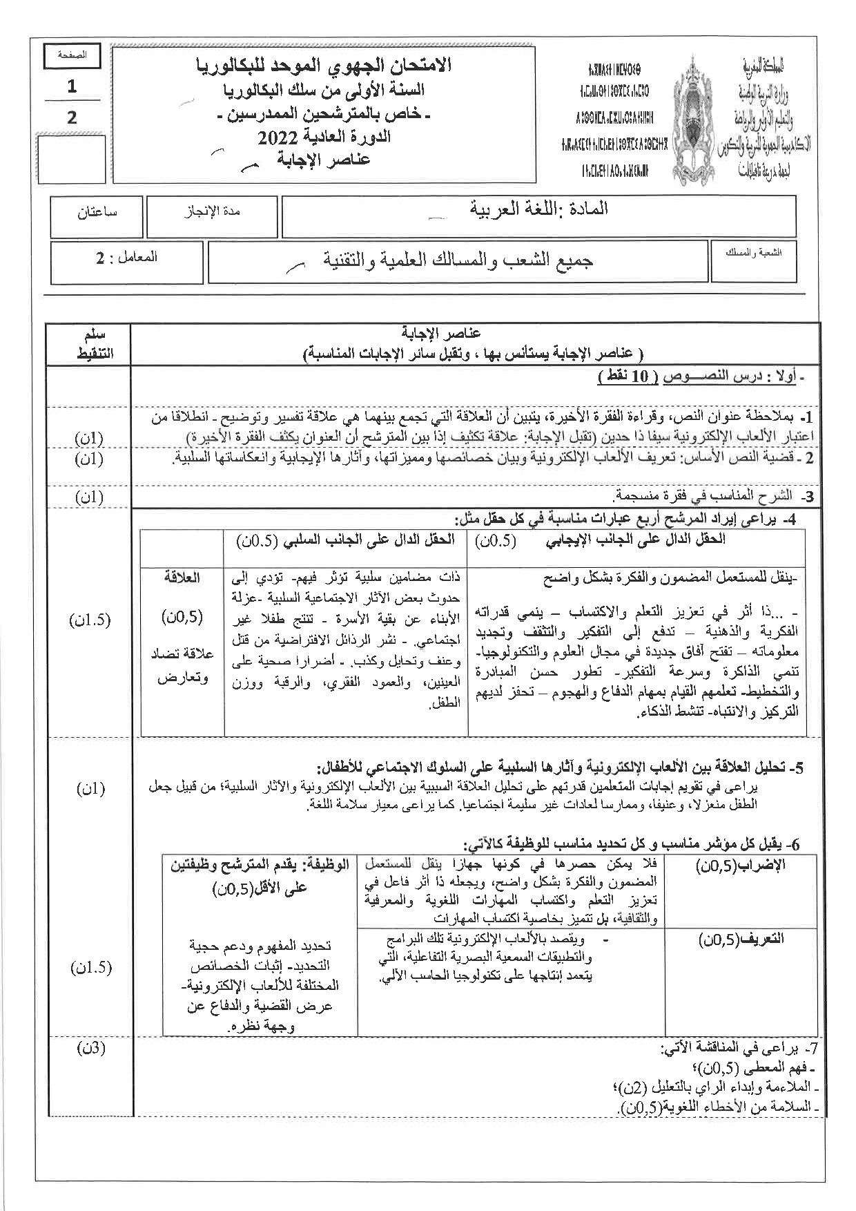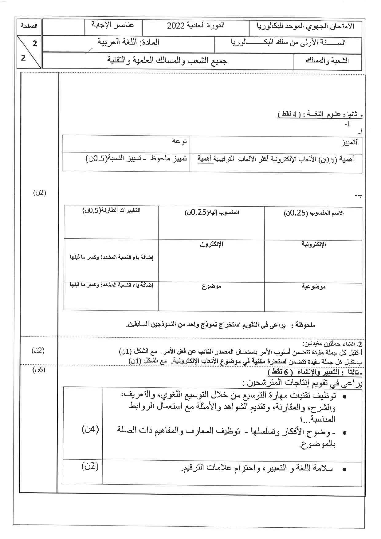 اللغة العربية: الأولى باكالوريا علوم رياضية