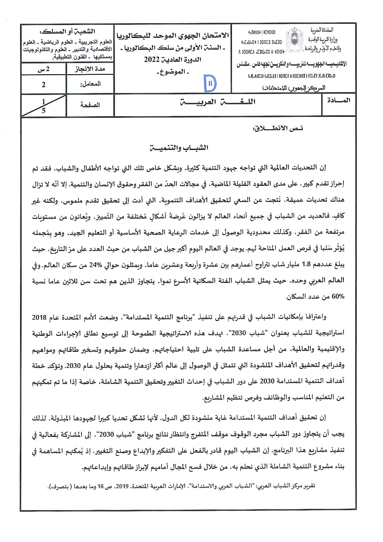 الامتحان الجهوي في اللغة العربية (د. العادية) - فاس مكناس 2022 - التصحيح