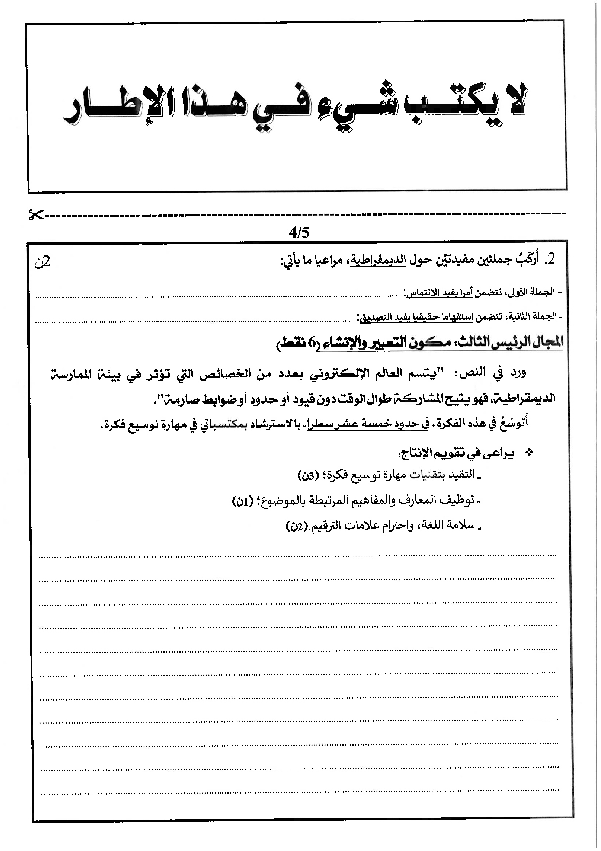 اللغة العربية: الأولى باكالوريا علوم رياضية