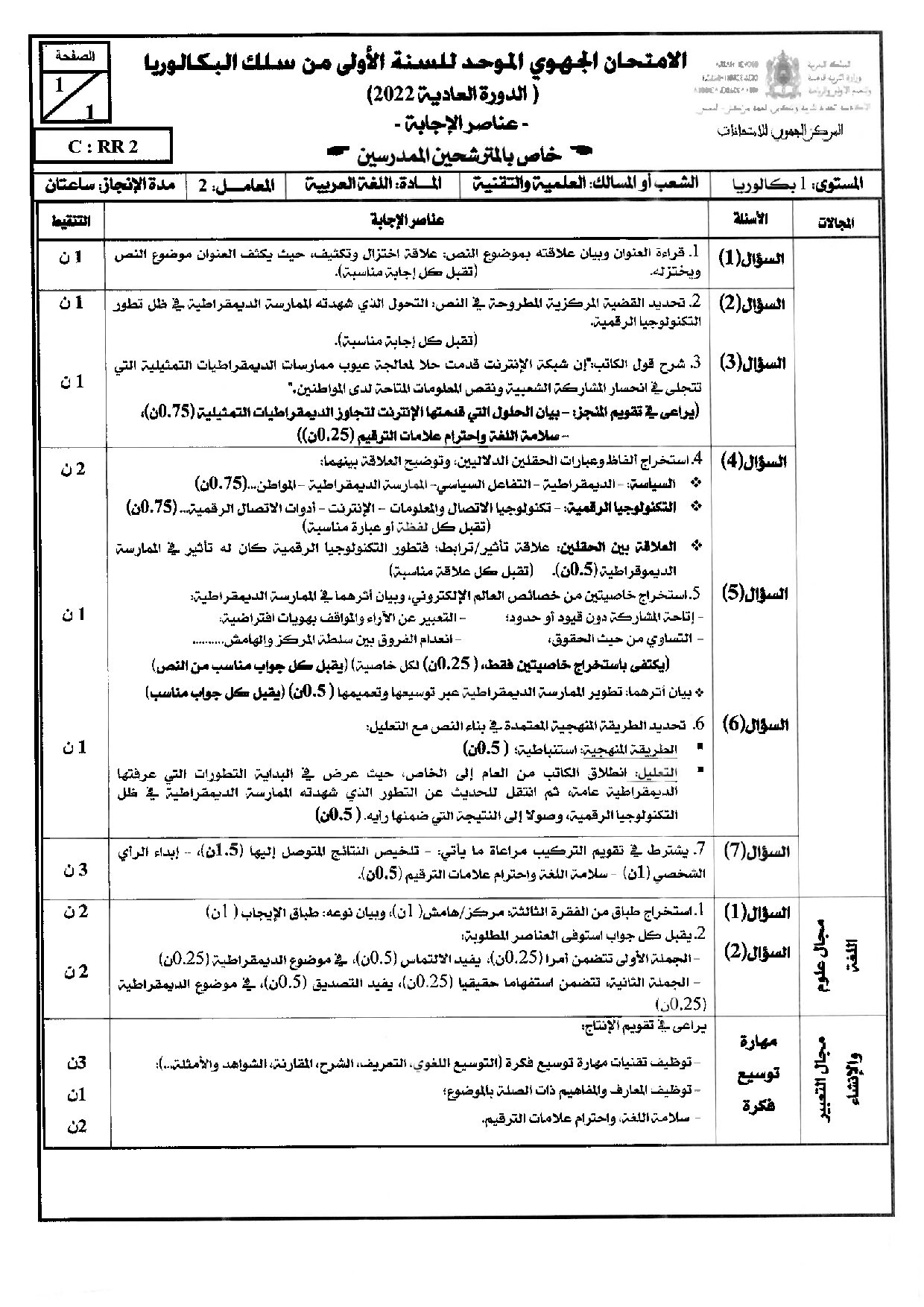 الامتحان الجهوي في اللغة العربية (د. العادية) - مراكش آسفي 2022 - التصحيح