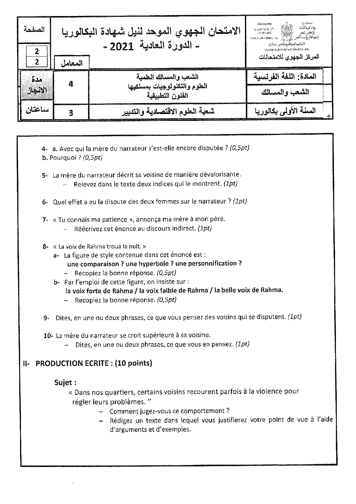 Examen régional Français (Session Normale) - Orient 2021 - Sujet