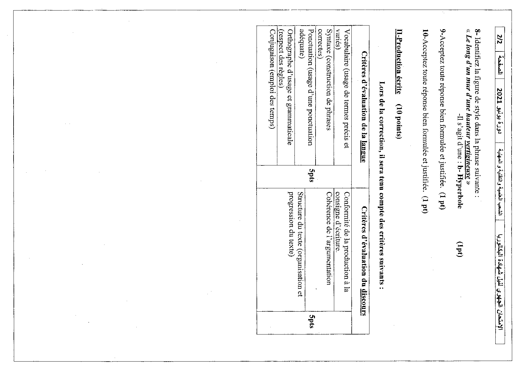 Examen régional Français (Session Normale) - Laâyoune-Sakia El Hamra 2021 - Corrigé
