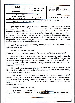 Examen régional Français (Session Normale) - Guelmim-Oued Noun 2022 - Sujet