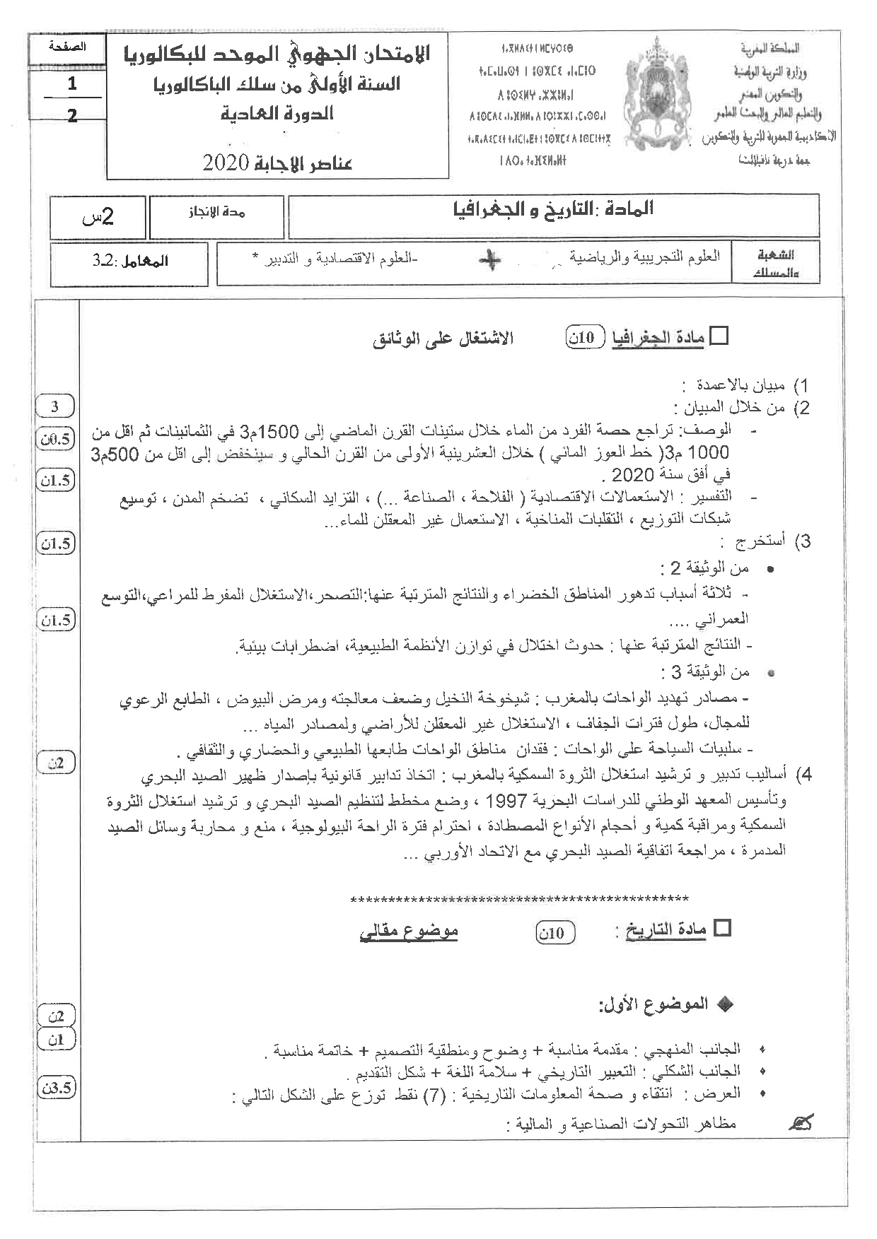 الامتحان الجهوي في التاريخ والجغرافيا (د. العادية) - درعة تافيلالت 2020 - التصحيح