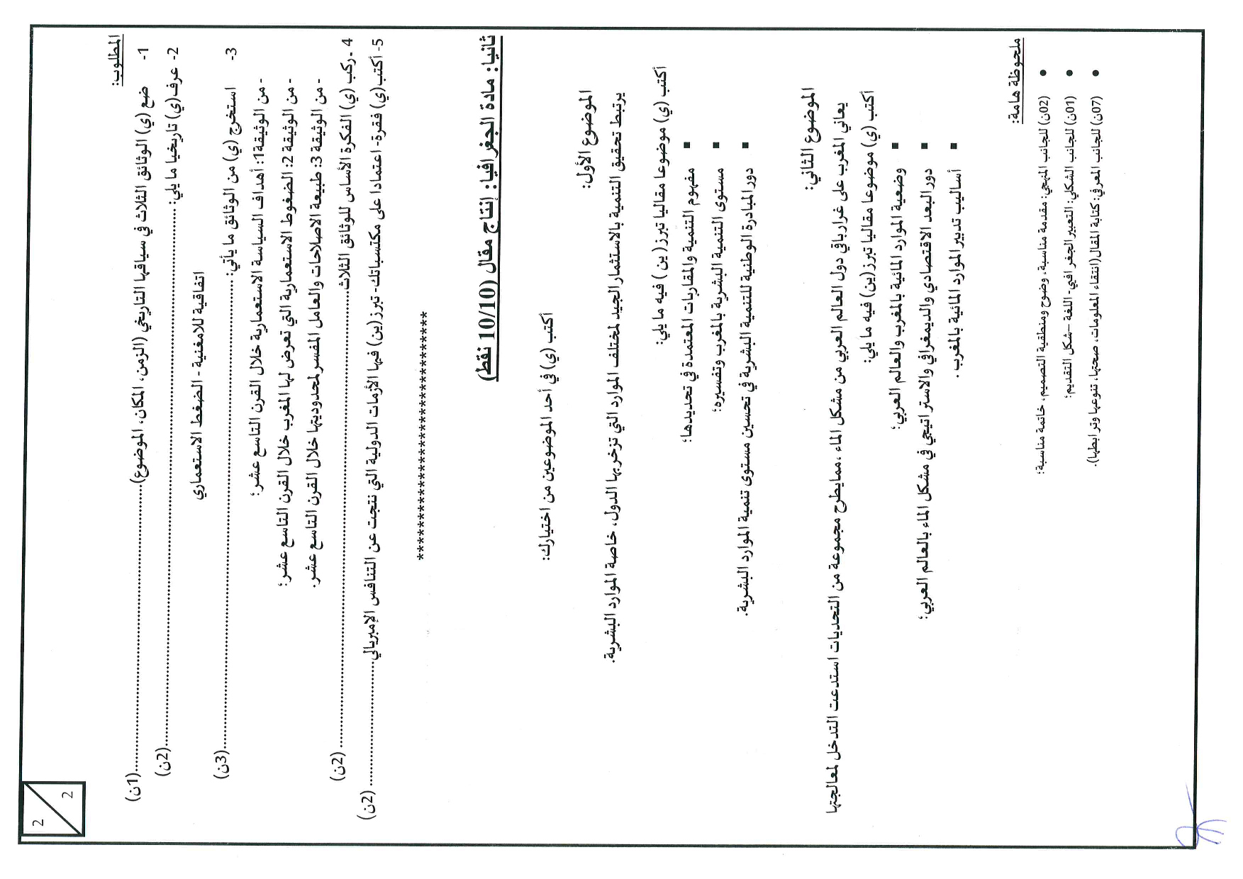 الامتحان الجهوي في التاريخ والجغرافيا (د. العادية) - مراكش آسفي 2021 - التصحيح