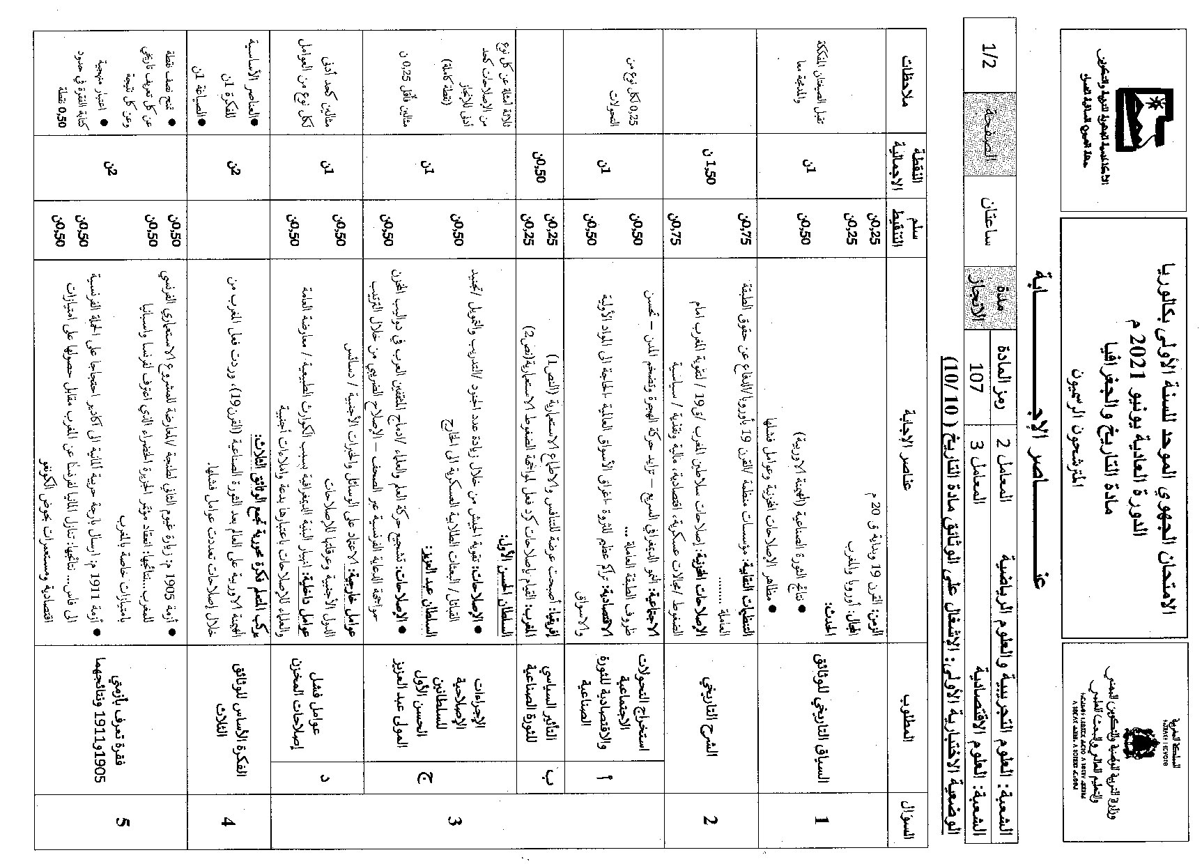 الامتحان الجهوي في التاريخ والجغرافيا (د. العادية) - العيون الساقية الحمراء 2021 - التصحيح