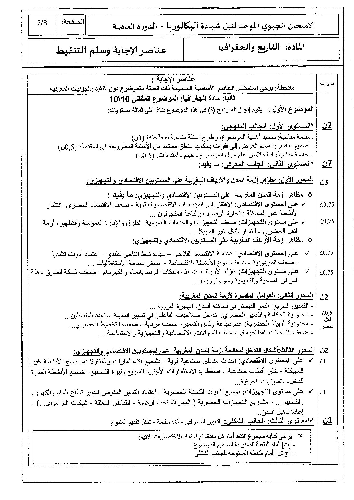 الامتحان الجهوي في التاريخ والجغرافيا (د. العادية) - الدار البيضاء سطات 2022 - التصحيح