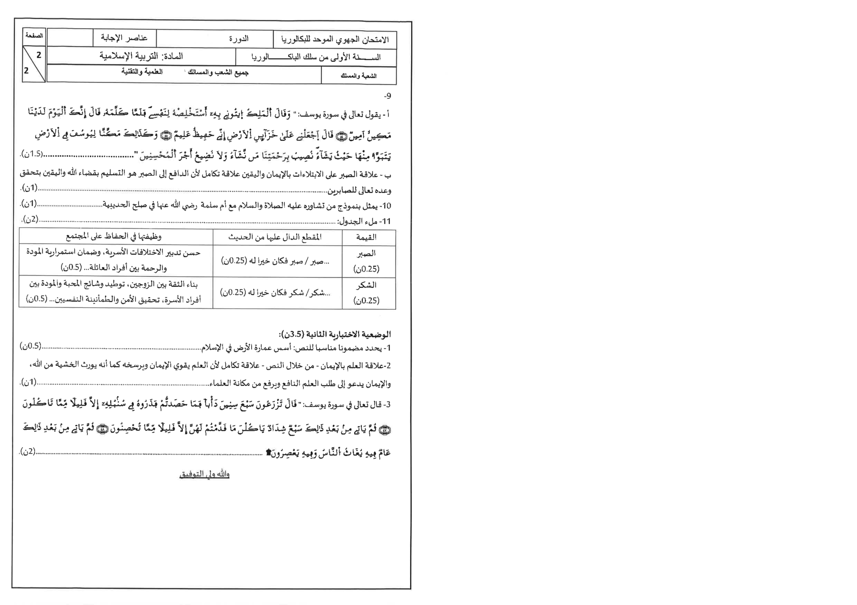 التربية الإسلامية: الأولى باك علوم وتكنولوجيات كهربائية