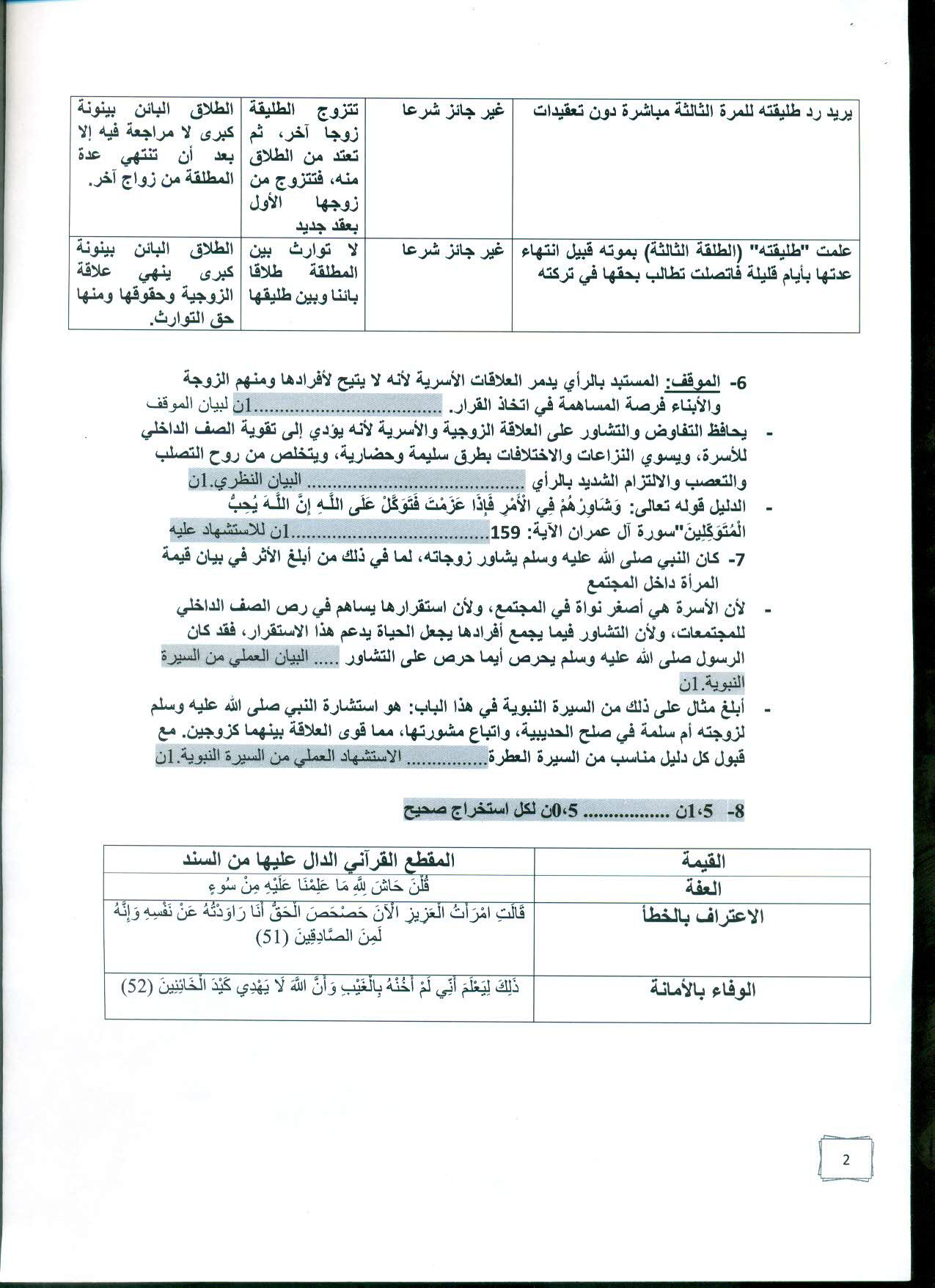 الامتحان الجهوي في التربية الإسلامية (د. العادية) - العيون الساقية الحمراء 2020 - التصحيح