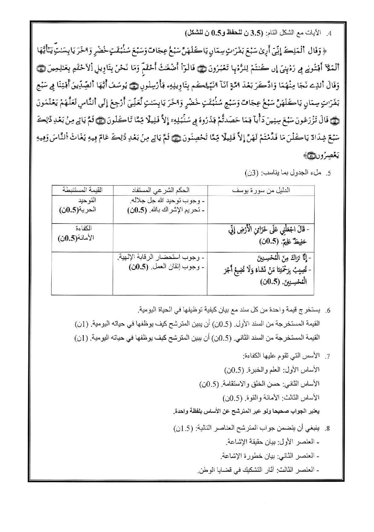 التربية الإسلامية: الأولى باك علوم رياضية